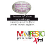 Per questo abbiamo promosso l’elaborazione partecipata di un “Manifesto dell’Arci per la Cultura” evidenziando i nodi che la nostra associazione ritiene fondamentali per rafforzare cultura e conoscenza nel nostro Paese e in Europa. Abbiamo l’ambizione di contribuire al dibattito sul futuro dello sviluppo del nostro Paese e dell’Europa coinvolgendo il maggior numero di persone.