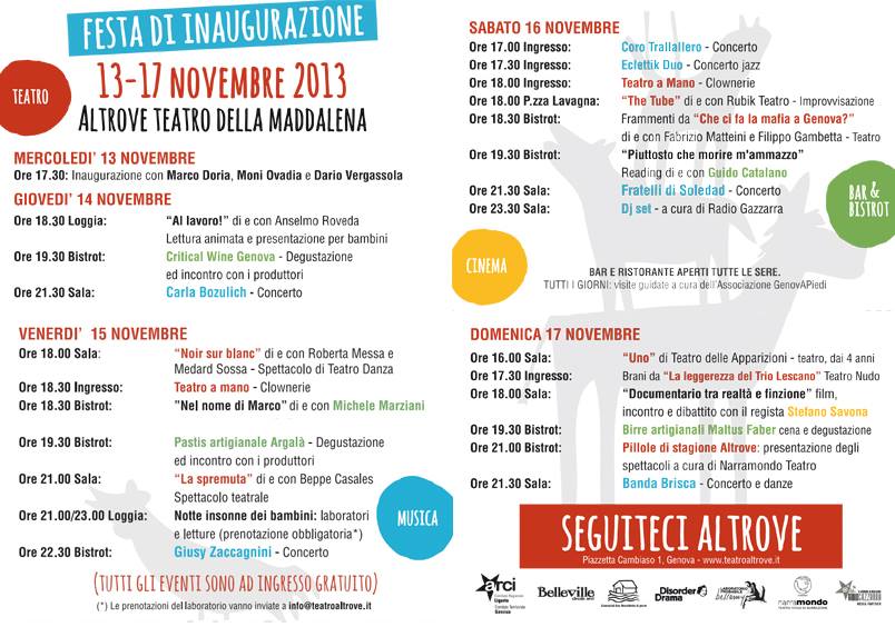Cinque giorni di inaugurazione per festeggiare la riapertura del Teatro della Maddalena. Tutti gli eventi sono ad ingresso gratuito.